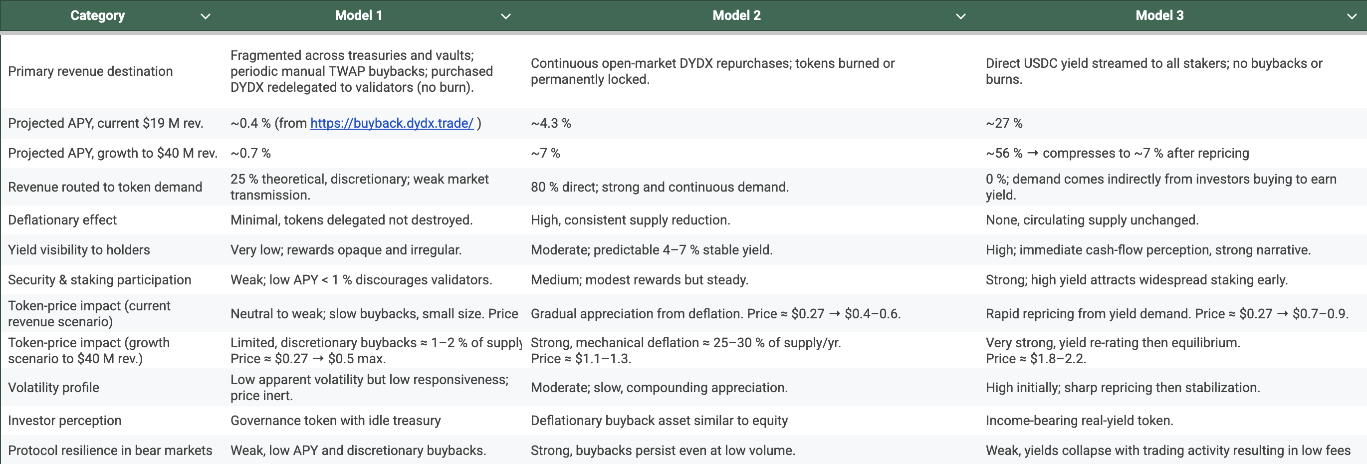 - dYdX currently allocates 25% of its revenue share to buybacks. At current prices, this accounts for between 1.3% and 1.7% of diluted supply annually.