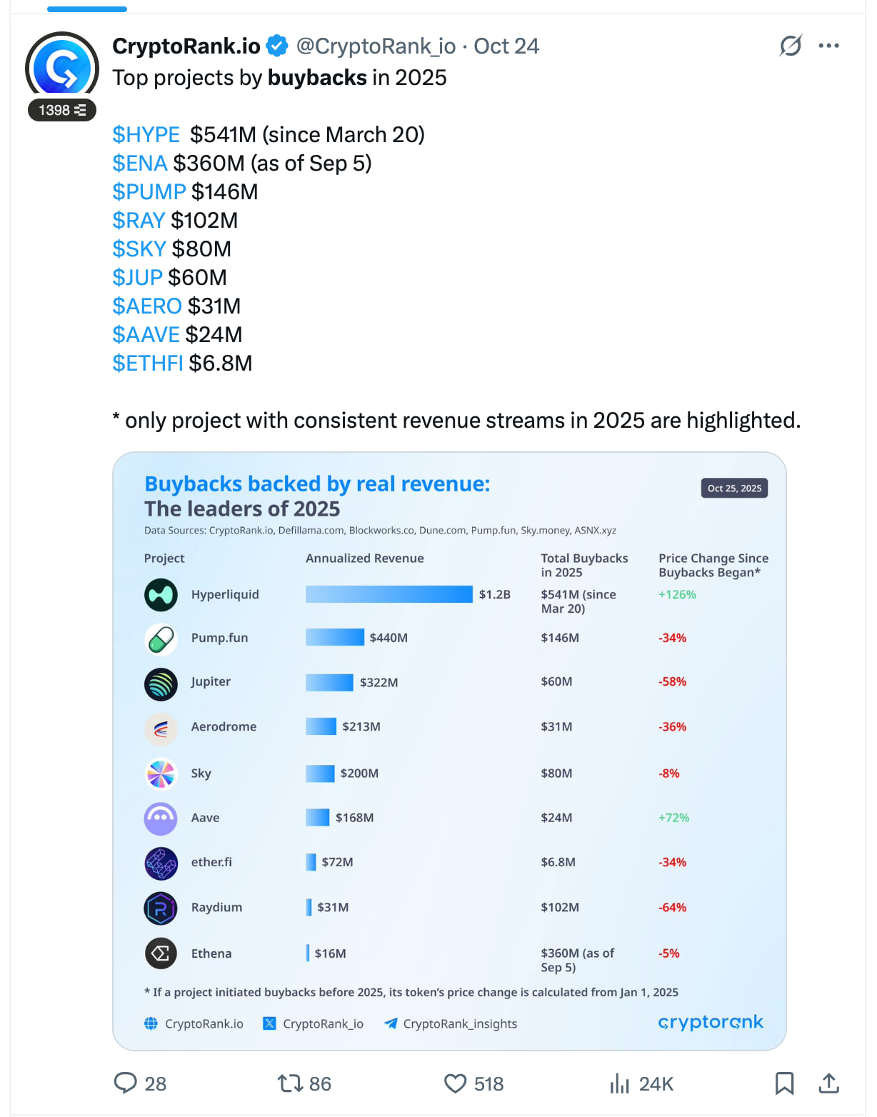 Another example from CryptoRank, which illustrates the similar opinion towards buybacks: