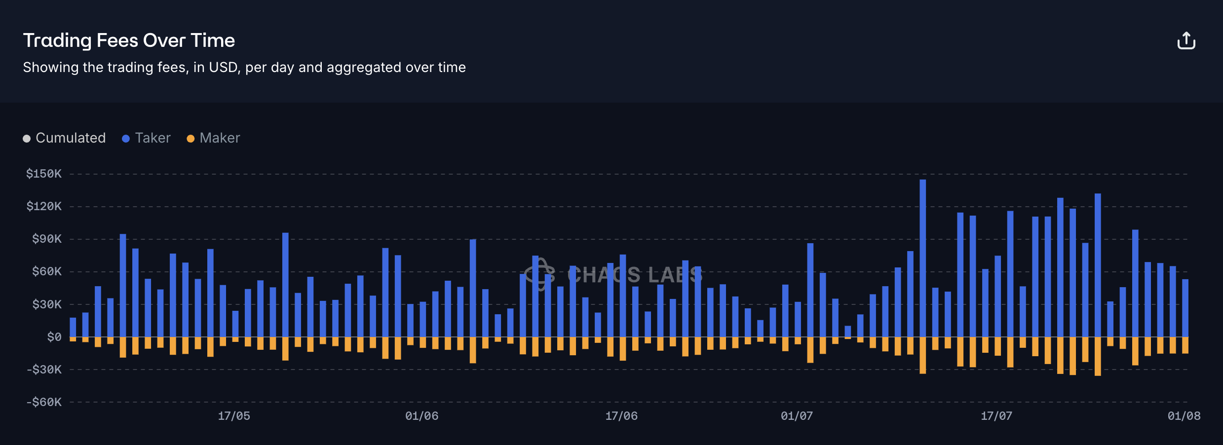 Volumes in major markets like ETH and BTC remained strong in Season 4, growing 65% and 26% respectively. Several alt markets experienced explosive growth, with XLM (+2,565%), LTC (+758%), and SUI (+314%) showing the sharpest gains. Notably, XRP (+188%), SOL (+113%), and DOGE (+99%) also more than doubled or nearly doubled their trading volumes compared to the previous season. This surge indicates a broader appetite for altcoin exposure, likely amplified by increased volatility throughout the season.